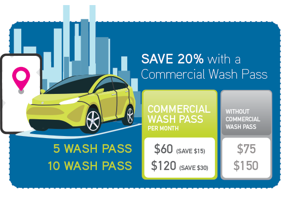 If you are a Taxi, Courier or operate an app-based transportation services (including but not limited to Uber) or operate a professional transportation vehicle, you’ll love our Commercial Wash Pass
